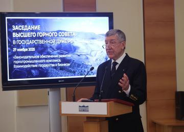27 ноября 2025 года в Государственной Думе Российской Федерации состоялось заседание Высшего горного совета. Заседание открыл Председатель Высшего горного совета Юрий Константинович Шафраник, выступивший с программным докладом о состоянии и перспективах развития отечественного горного машиностроения.
